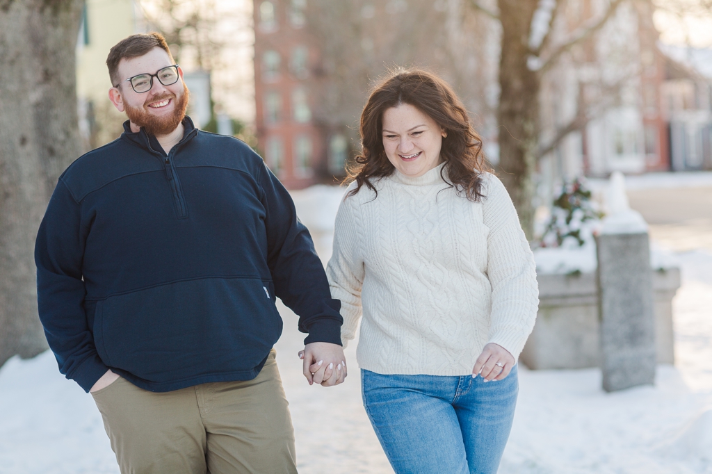 Catrina & Ian’s Portsmouth NH engagement session was filled with laughter, cozy embraces, and the soft glow of the season’s first change. Red brick pathways, historic architecture, and soft autumn light made the perfect backdrop for capturing love that feels both classic and enduring.